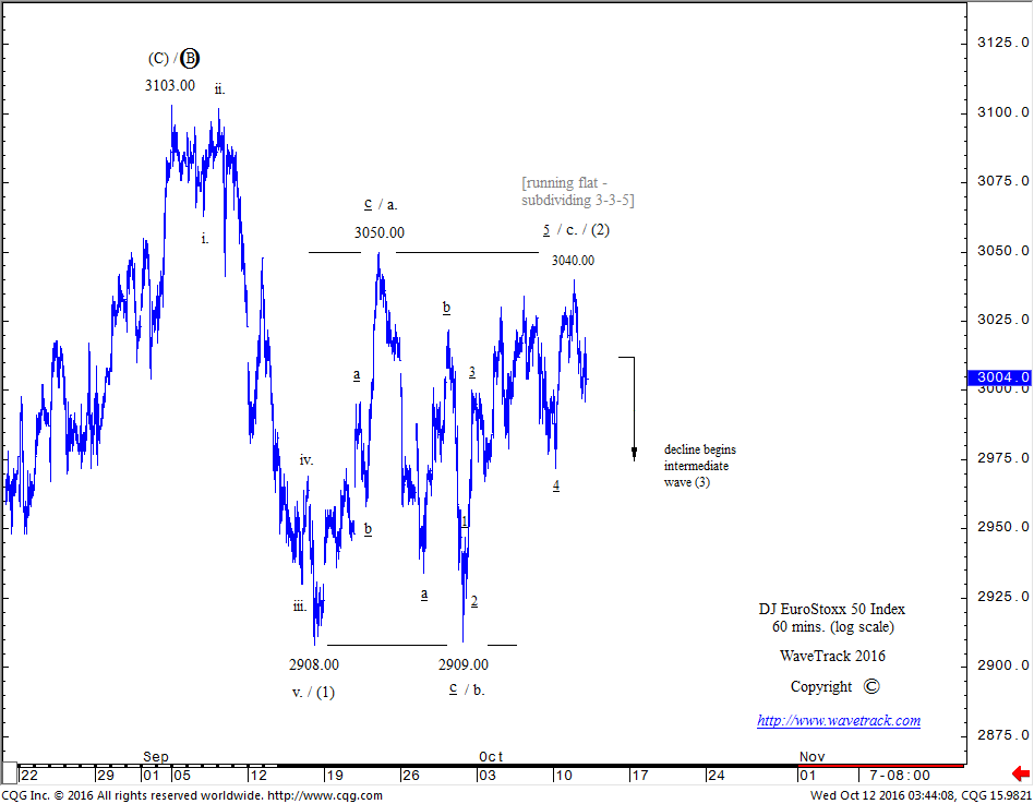 EuroStoxx 50 – 60 mins. Elliott Wave chart