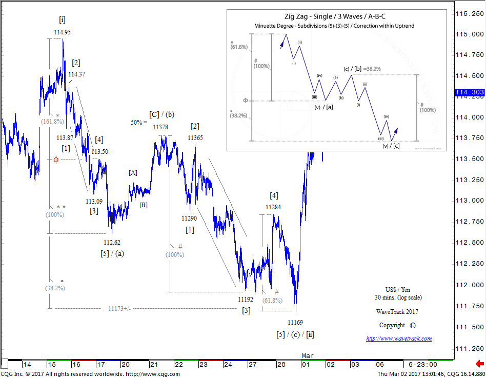Answer – Fibonacci USD/JPY – Perfection! 3 Wave Zig Zag 114.95-111.69 – Resumes Uptrend